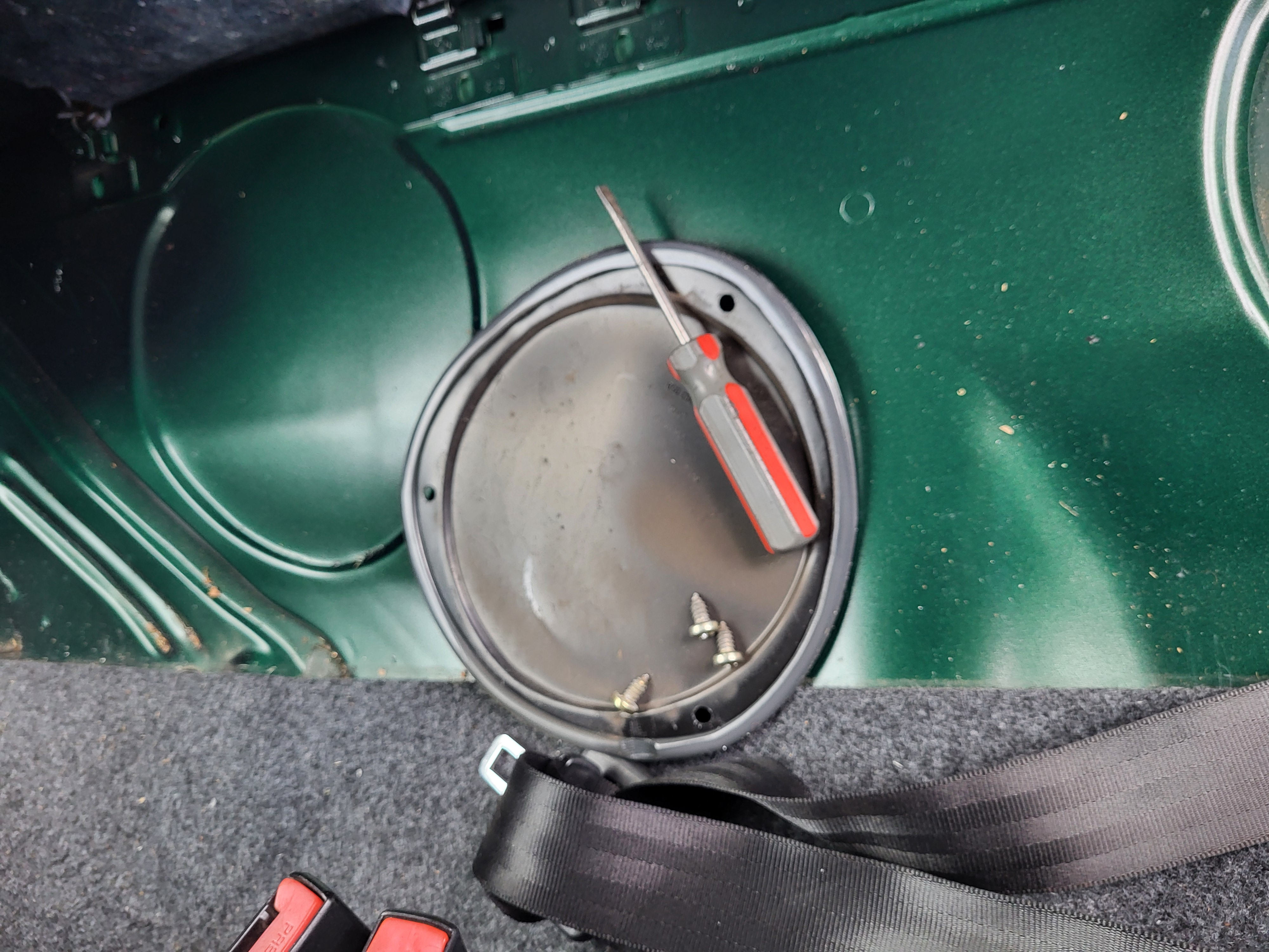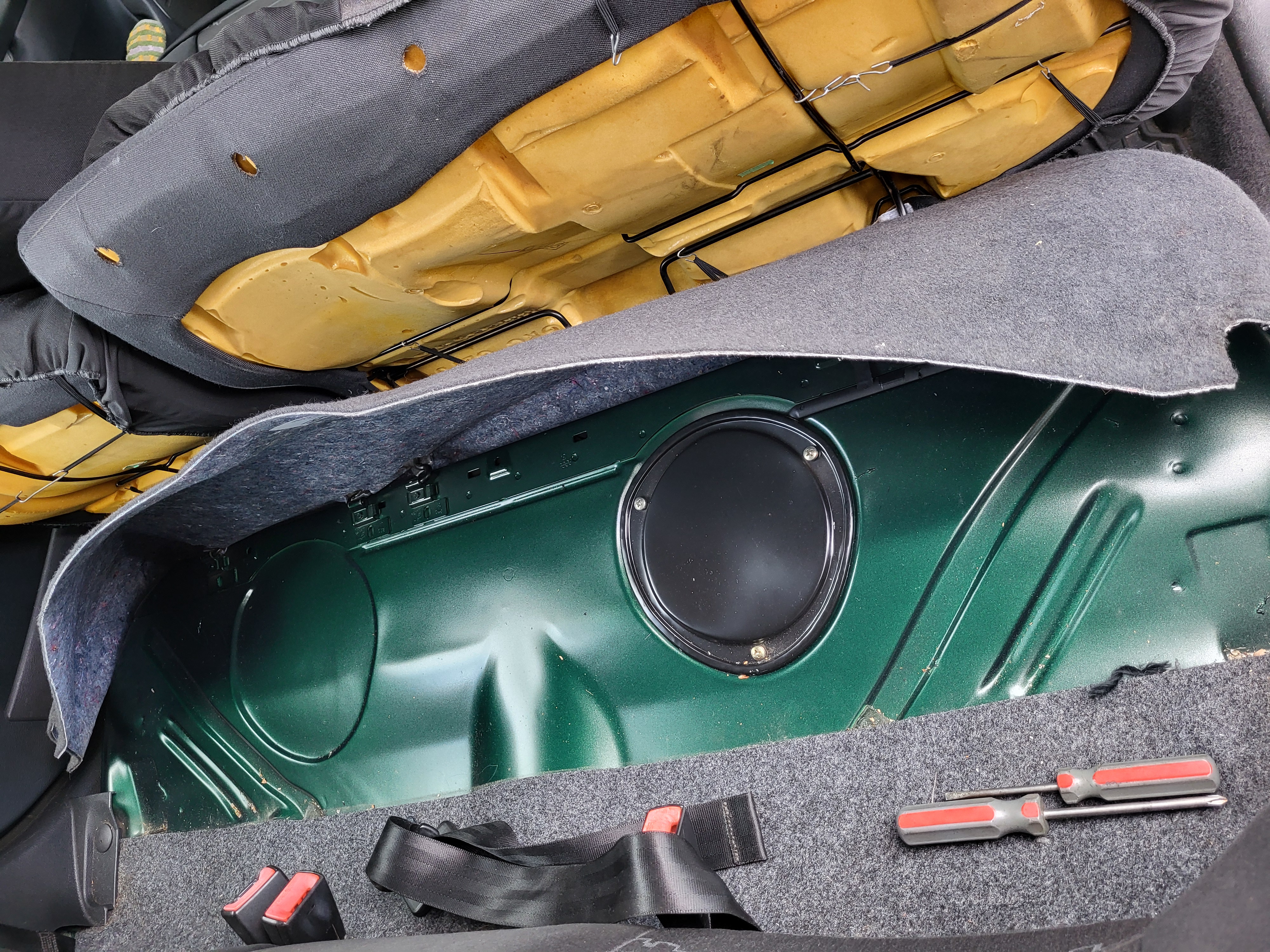 namontujem krytku vrátíme koberec na původní místo a dáme sedačky do původní pozice