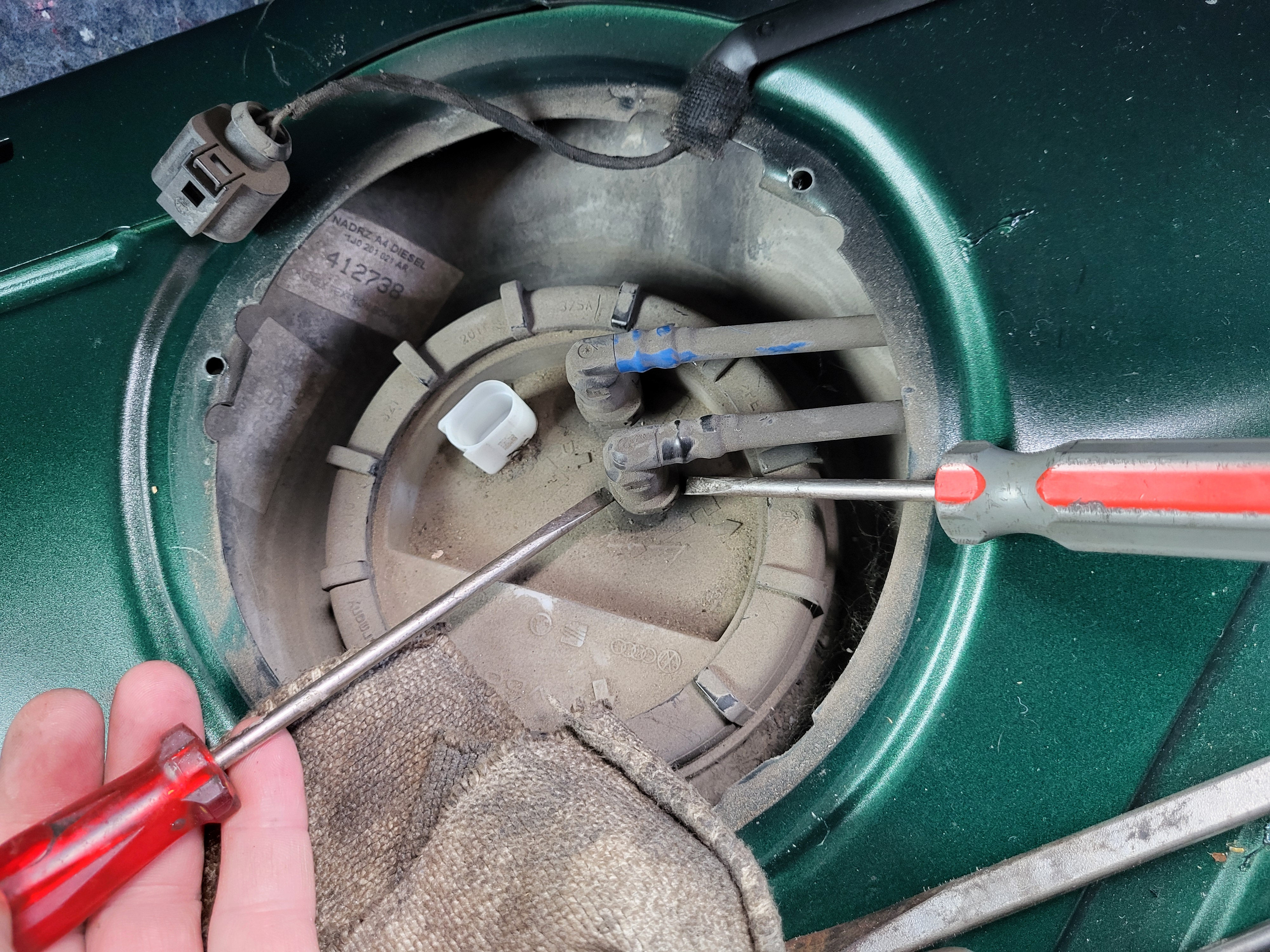 ted je třeba vyšroubovat tu plastovou matku já použil velký šroubovák a kladivo