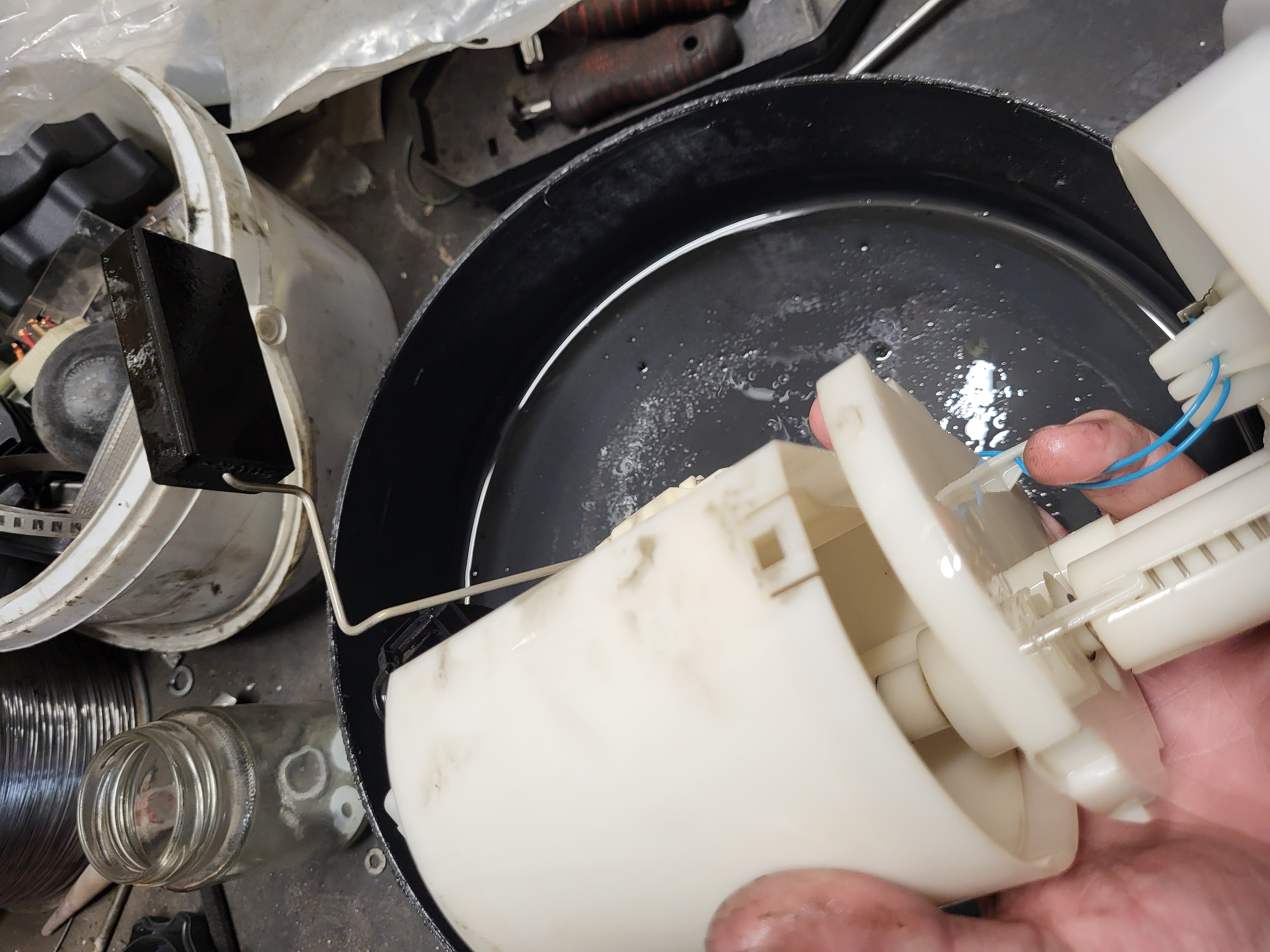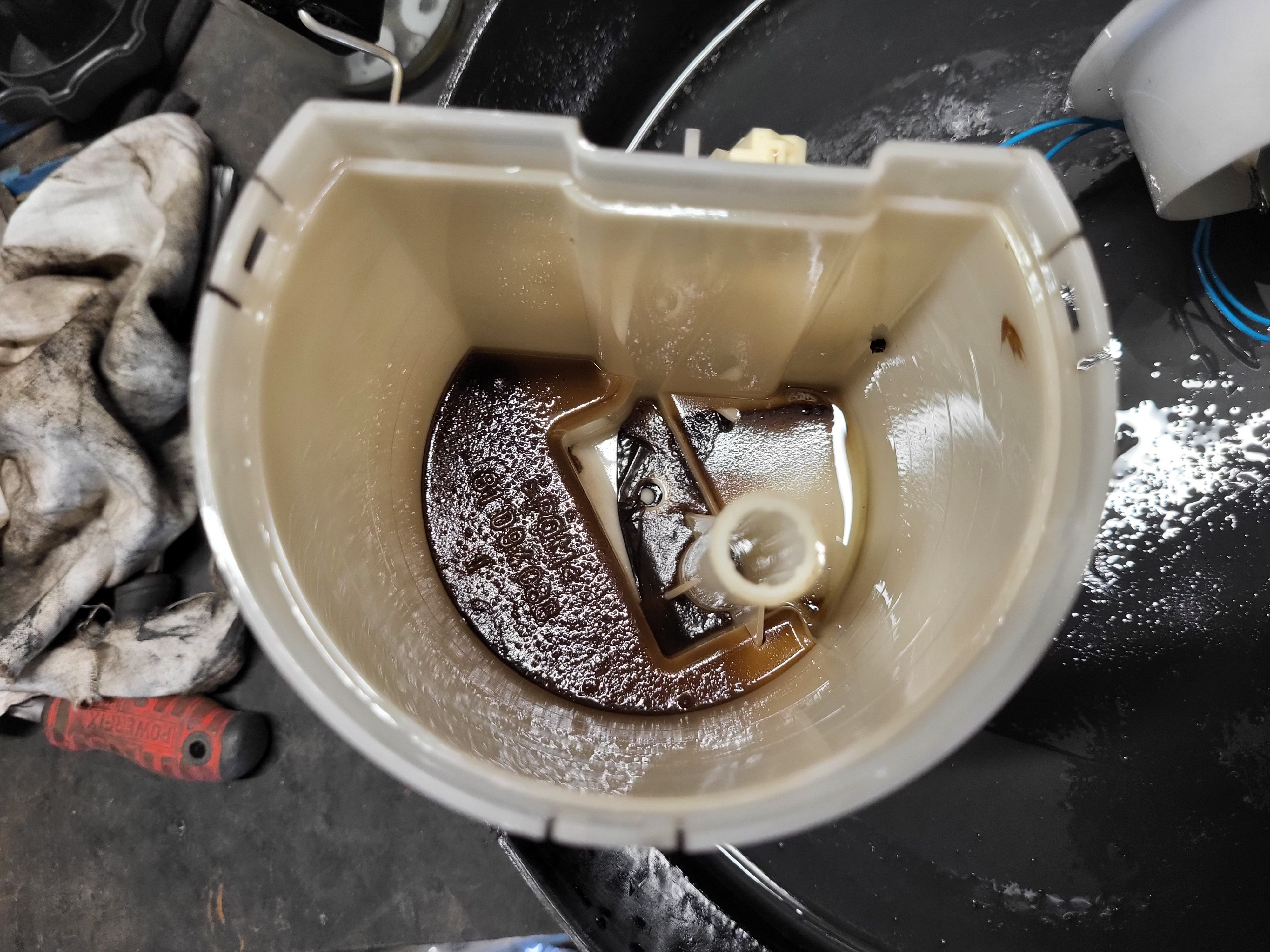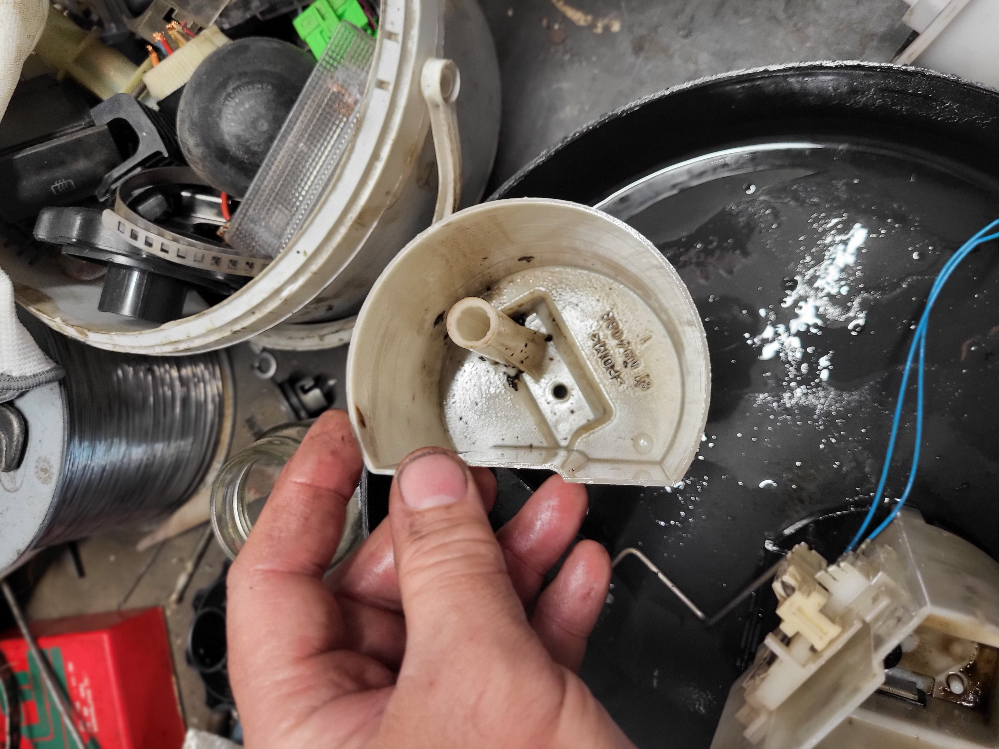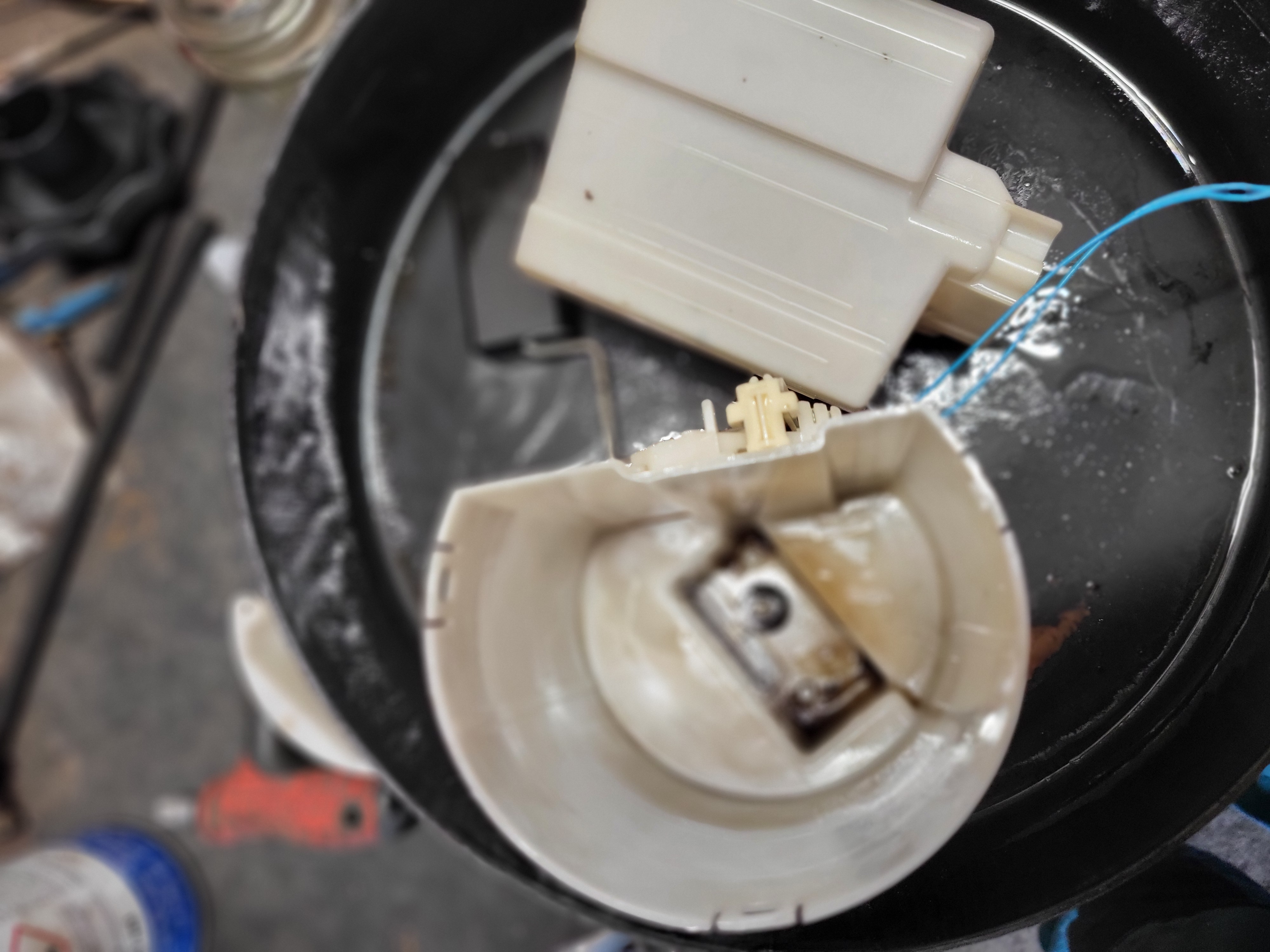 ted si po obvodu vycvaknem západky a koš rozpůlíme dáváme pozor at si neurvem dráty od plováku :pozor: