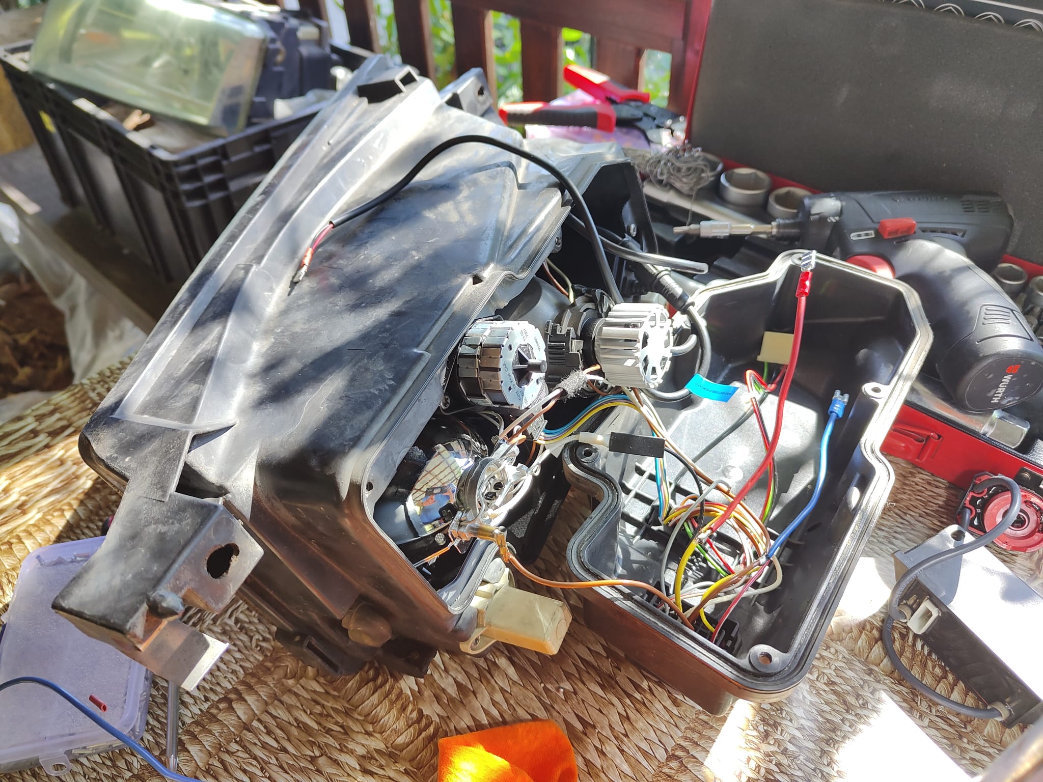 po ůpravě obě světla namontujem zpět do auta