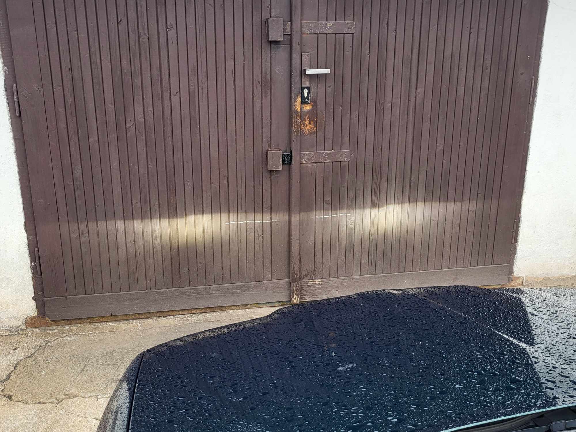 opřený o vrata garáže:
