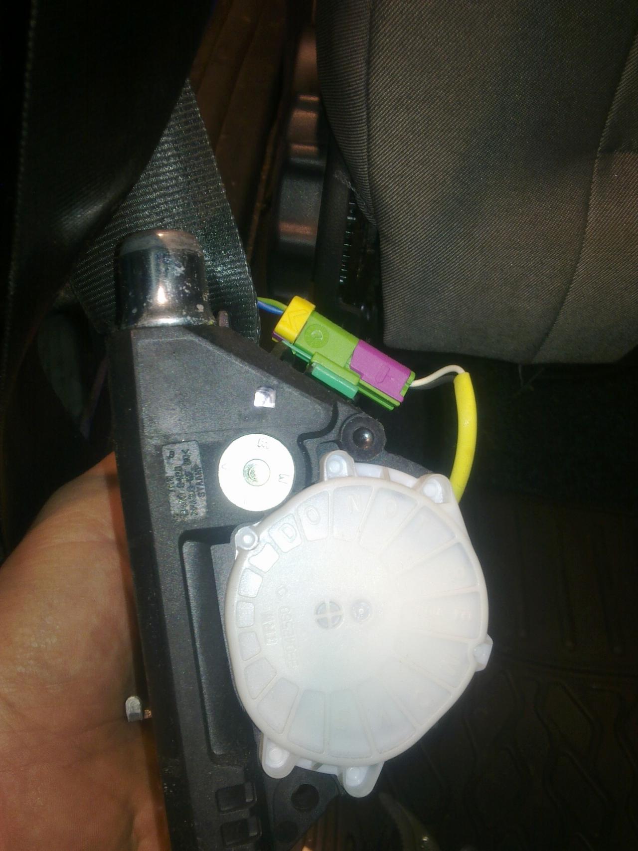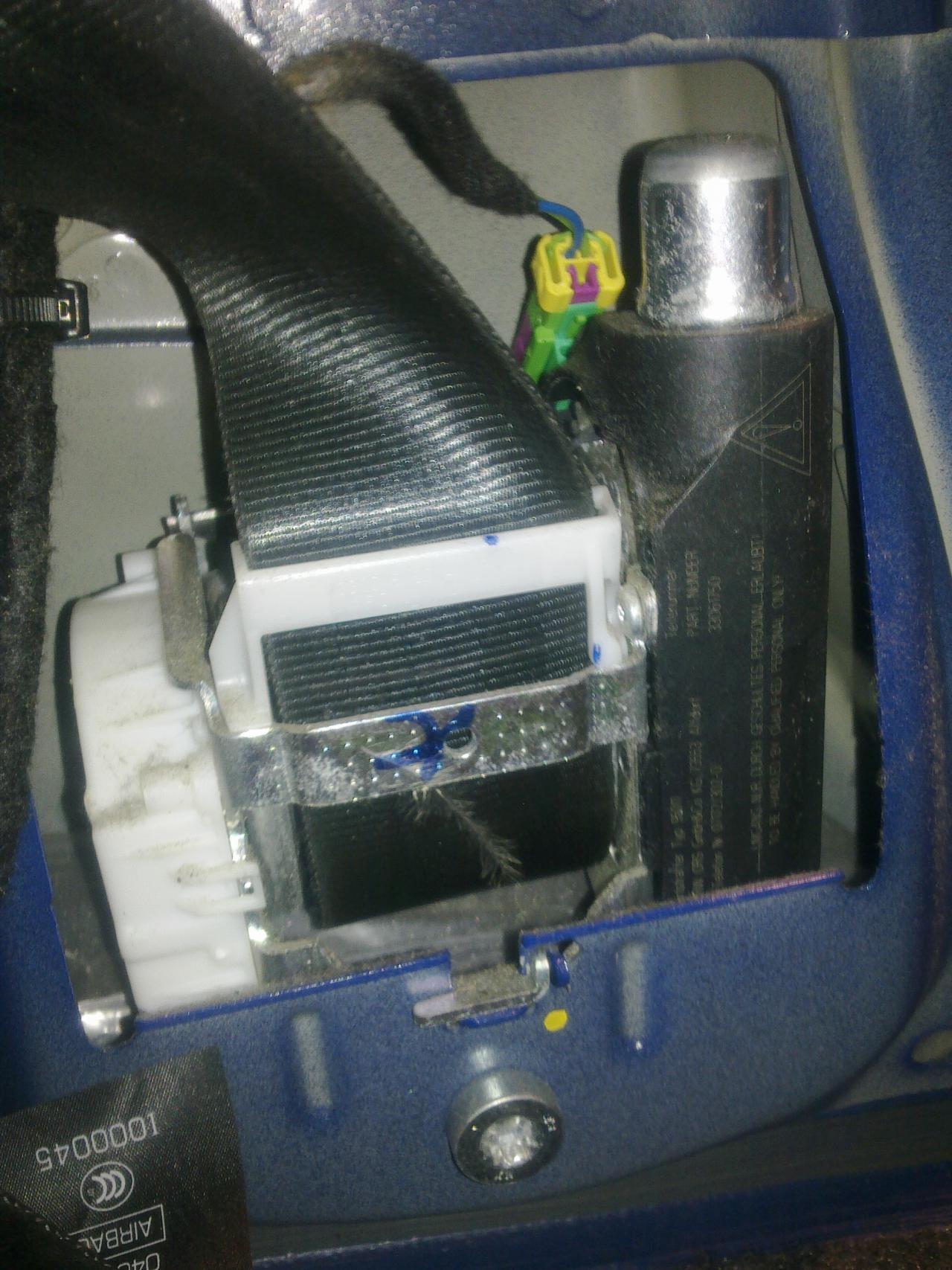 napíchnul sem VAGa a vyhodilo to todle viz foto takže částečně si ze sloupku na straně řidiče a za řidičem stáhnem těsnící gumu ted je třeba si za pomoci plochého delšího šroubováku vycvaknout ten krycí plast ted si povolíme dole šroub jenž drží pás stím předpínačem povytáhneme si to celé ven vemem slabší plochý šroubovák a opatrně vycvaknem konektor vemem jehlový pilník a opatrně očistíme oba kontakty pak je jemně přiohnem a stříknem kontaktolem ted nacvaknem konektor zpět a dřív než to složíme načteme to znova VAGem a přesvědčíme se jestli problém zmizel