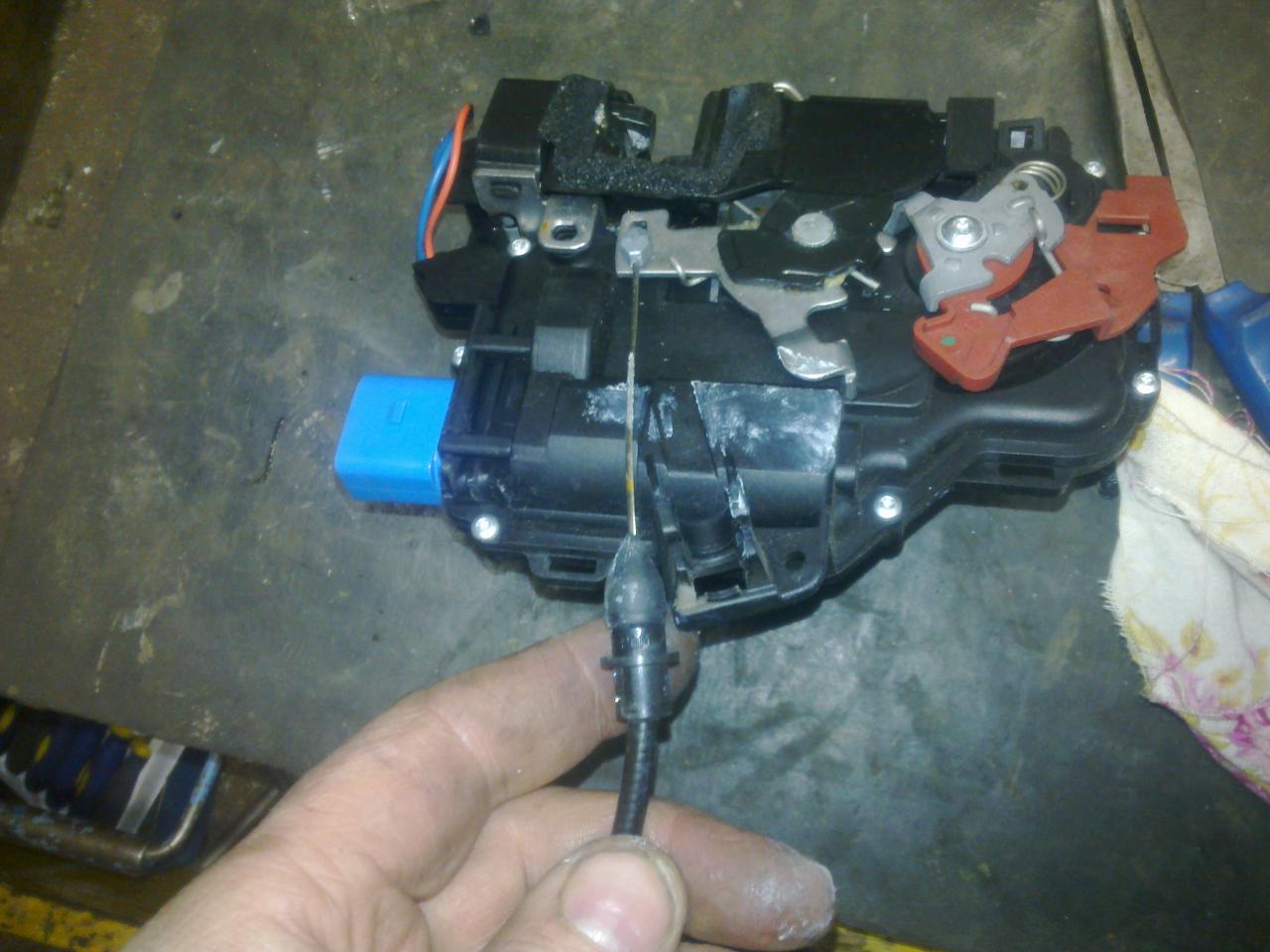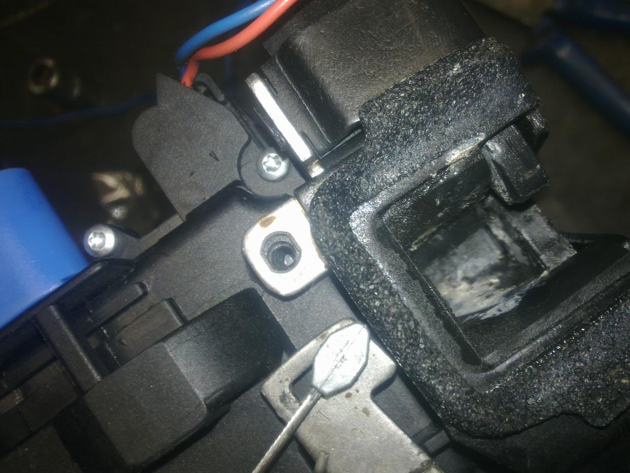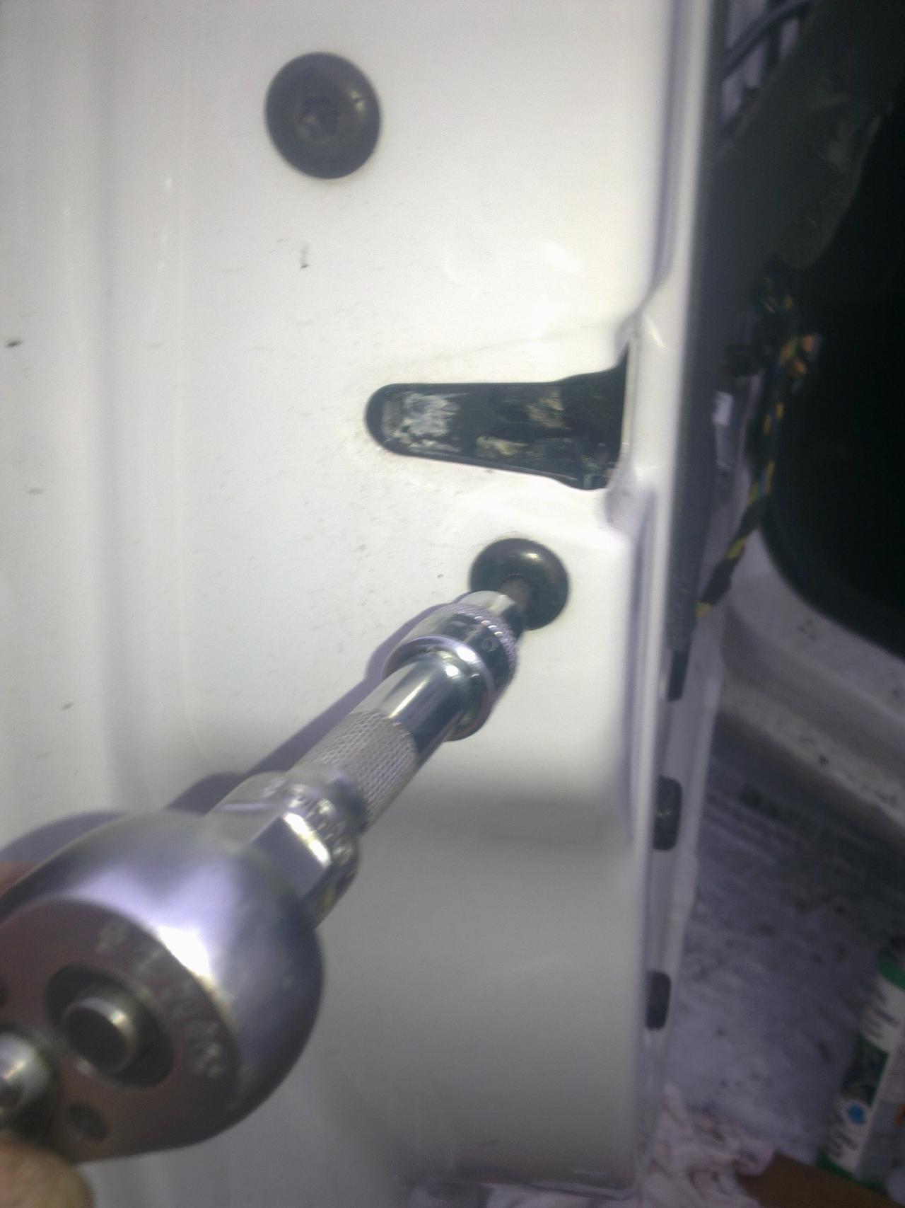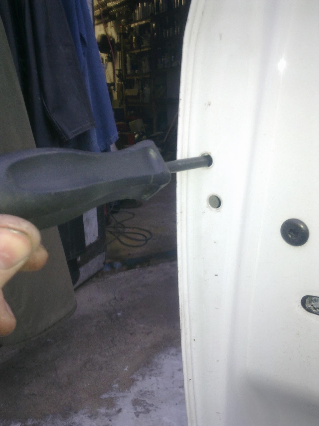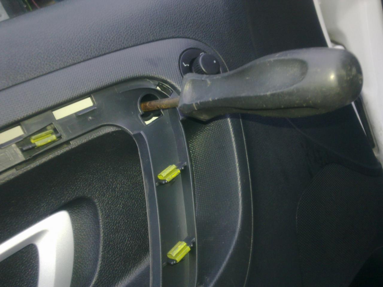 poté co ho vyháknem odpojíme bovden vnitřní kliky a tapec dáme stranou ted kapka prevence najdem konektor od ŘJ okna vycvaknem,zkontrolujem,očistíme a prostříkneme kontakty ted si odstraníme nalepenou vodětěsnou zábranu jenž kryje otvor pod nímž je uvnitř dveří zámek a vycvaknem konektor od zámku centrálu ted si z boku dveří vyloupnem obě záslepky a vrchní šroub vytočíme a spodní pouze povolíme-pozor nezkoušet ho ůplně vytočit nejde to