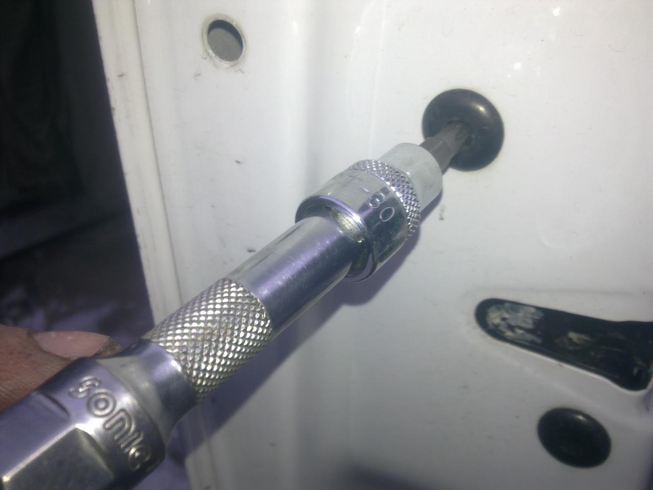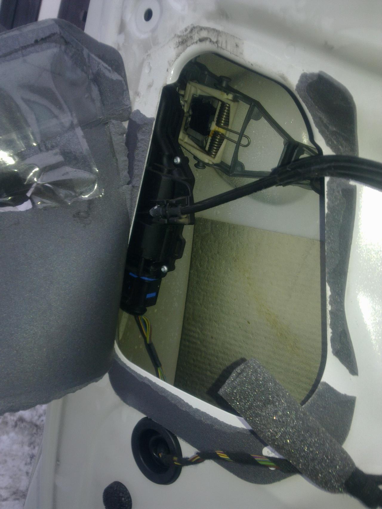 po namontování a vyskoušení zámku nandáme tapecírunk zapojíme konektory a bovden vnitřní kliky.utáhnem torxi jenž drží tapecírunk a nakonec nacvaknem krytku madla a slavíme vítěztví