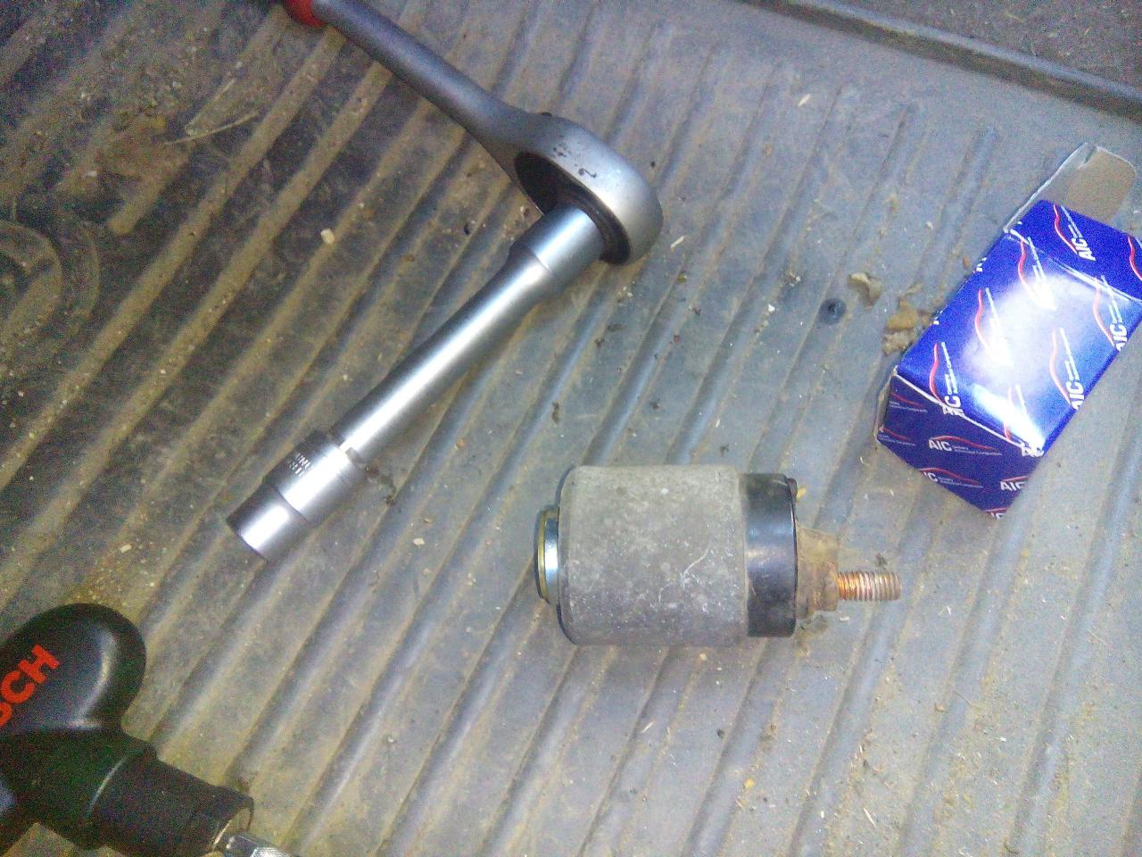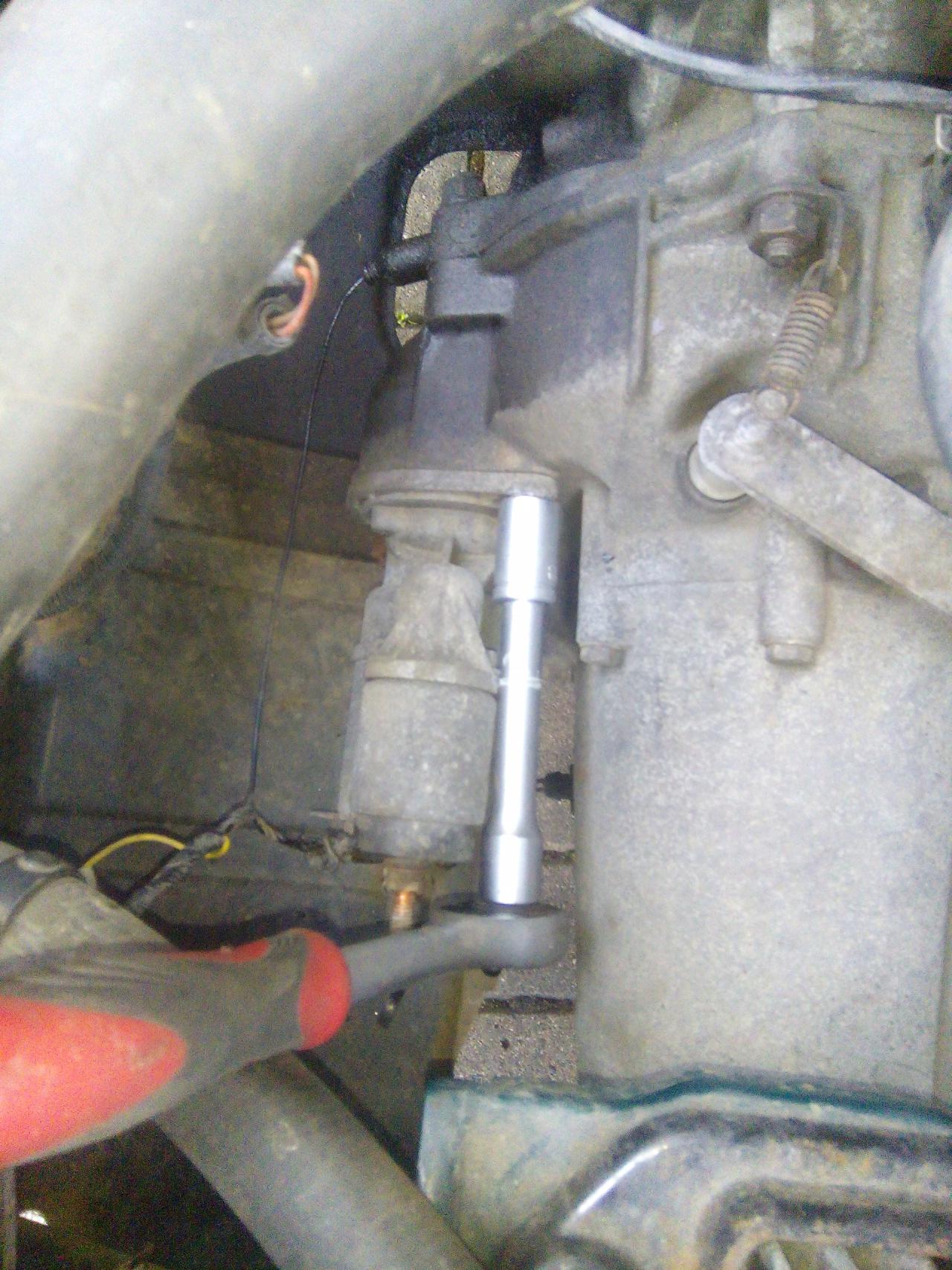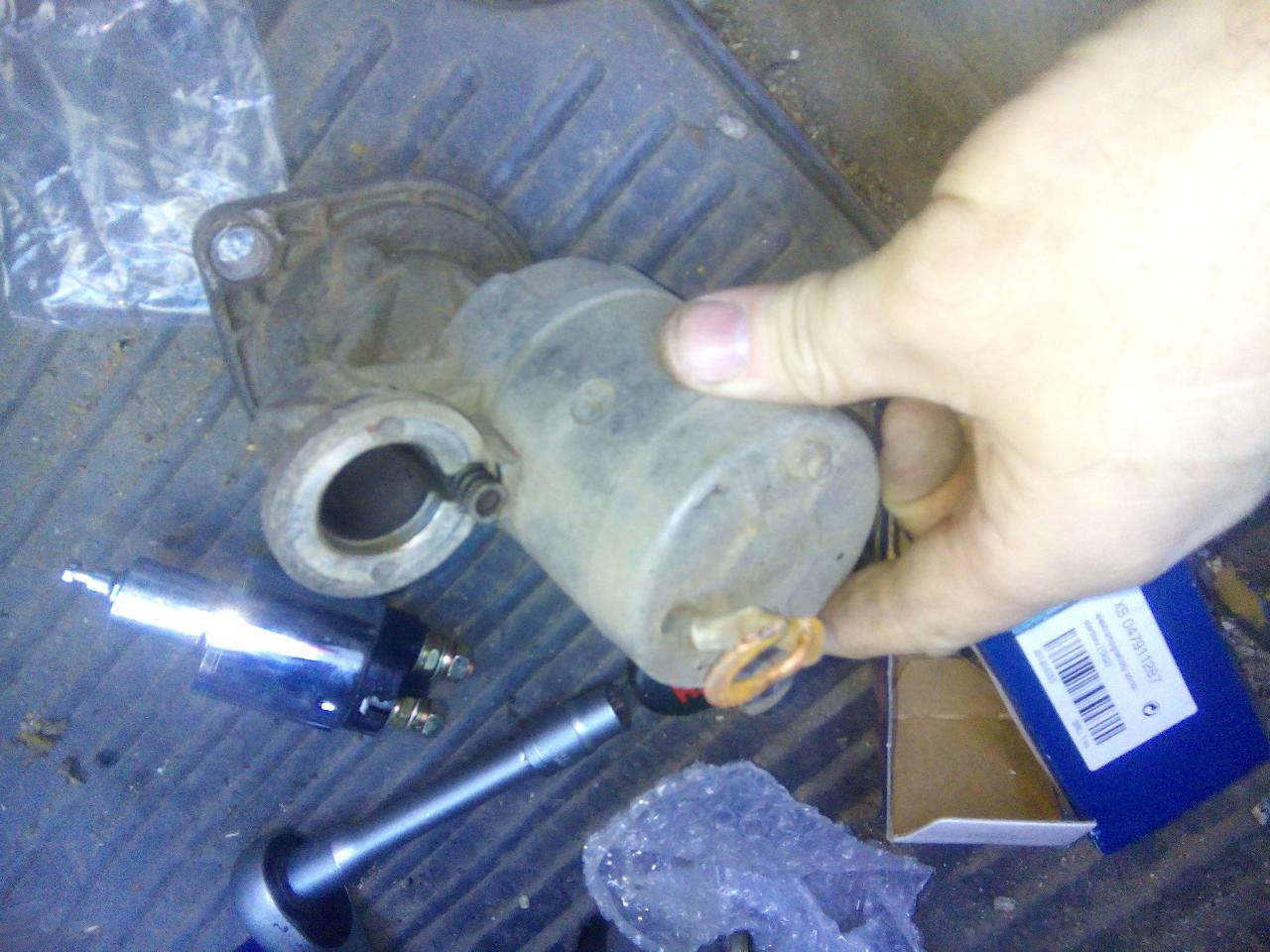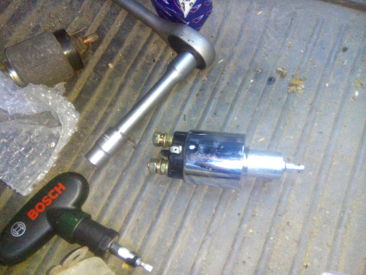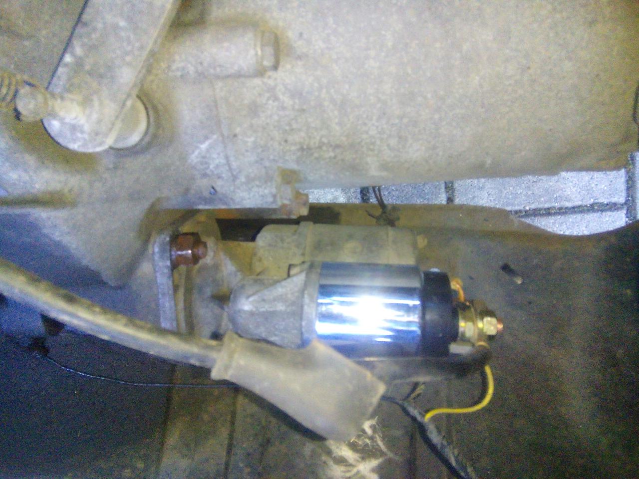mě odešla jen cívka,takže povolíme přívodní silový přívod do startéru a povolíme dva imbusy co drží samotnou cívku namontujem novou cívku,tady je třeba dát pozor aby vybrání tý pohyblivý části cívky zapadlo do tý ovládací vydličky