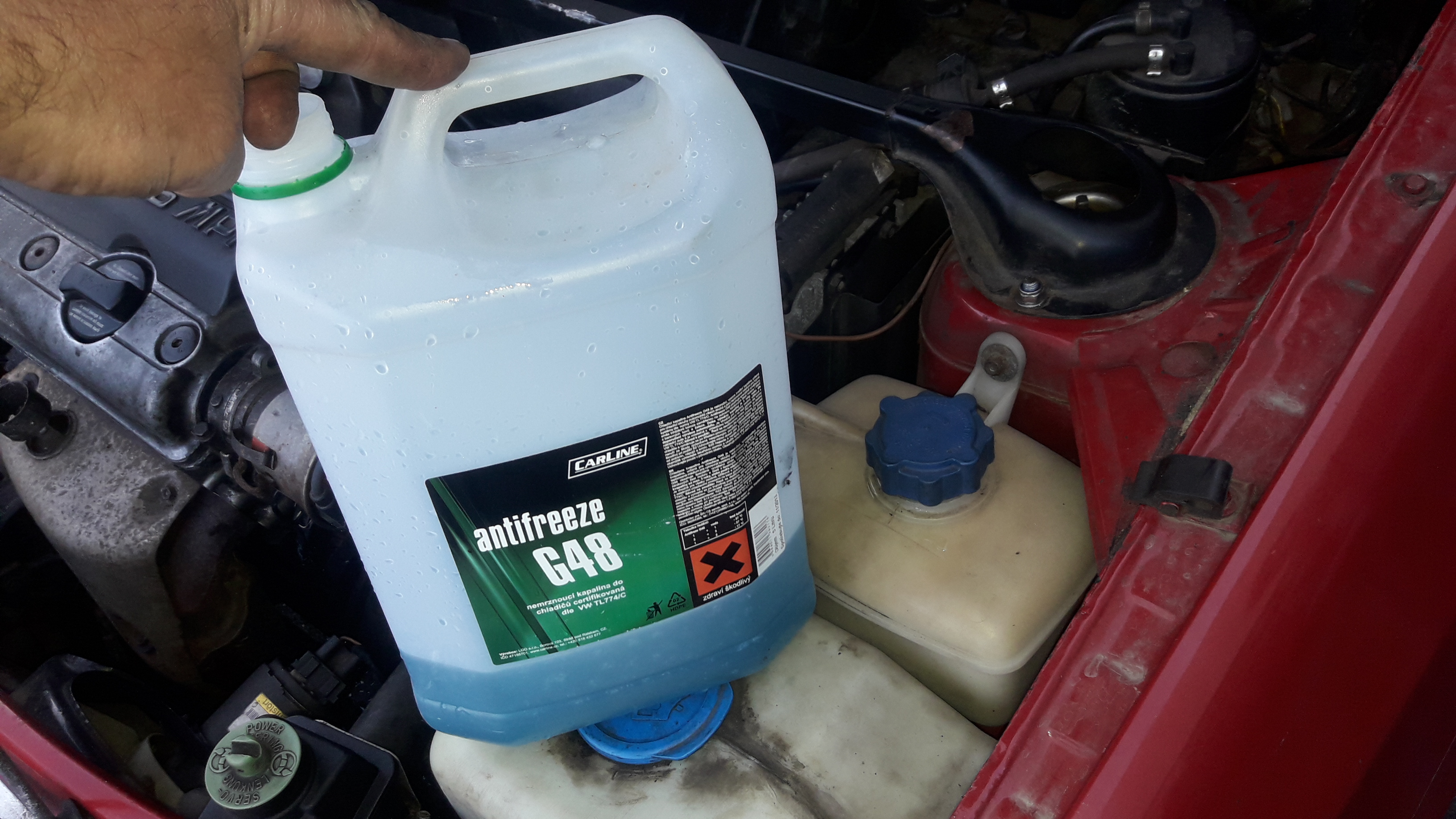 poté kontrola hladiny chladící kapaliny v nádobce