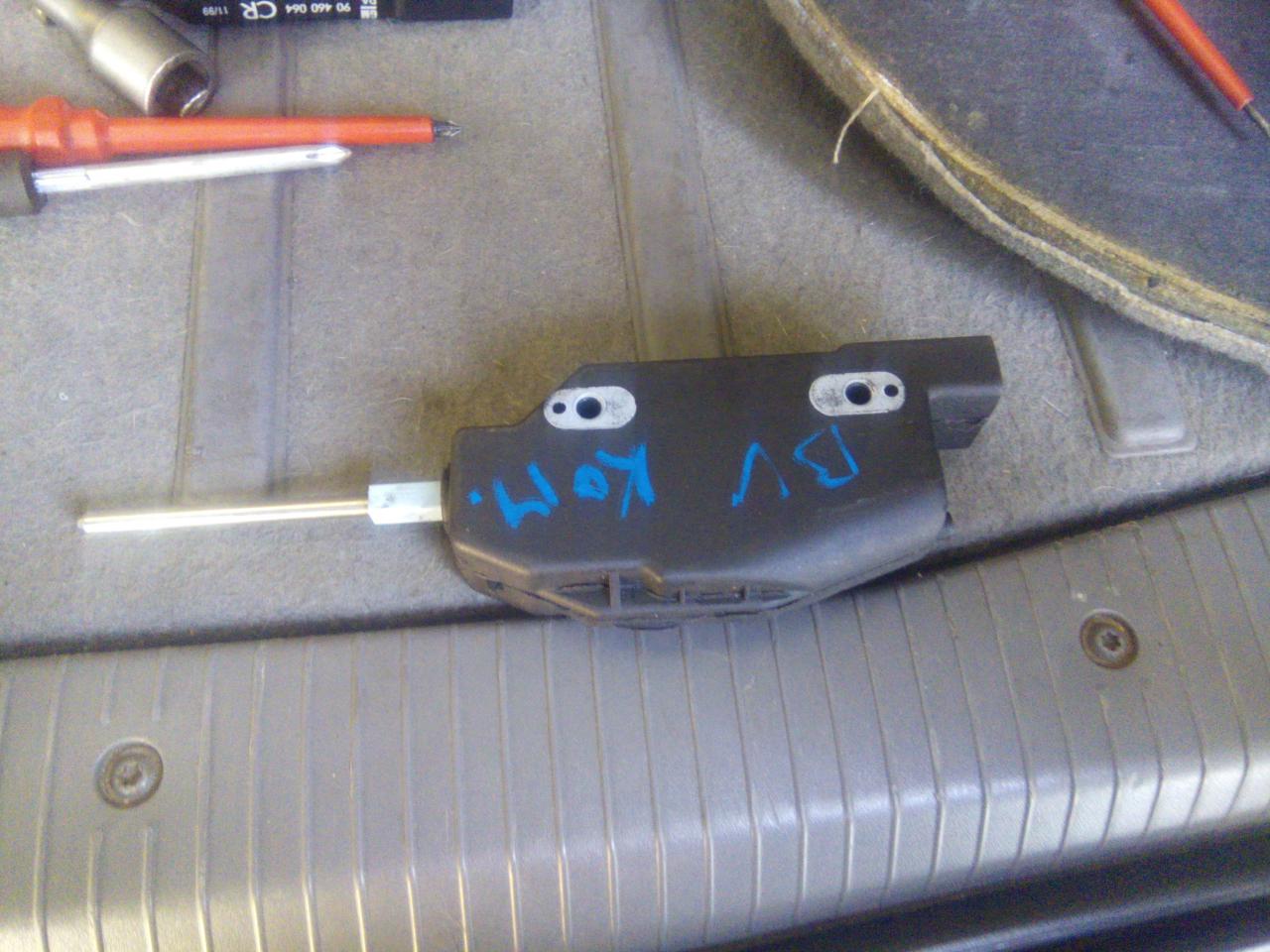 za ní je plechový držák a na něm je dvěma šrouby uchycen motorek zavírání víka nádrže