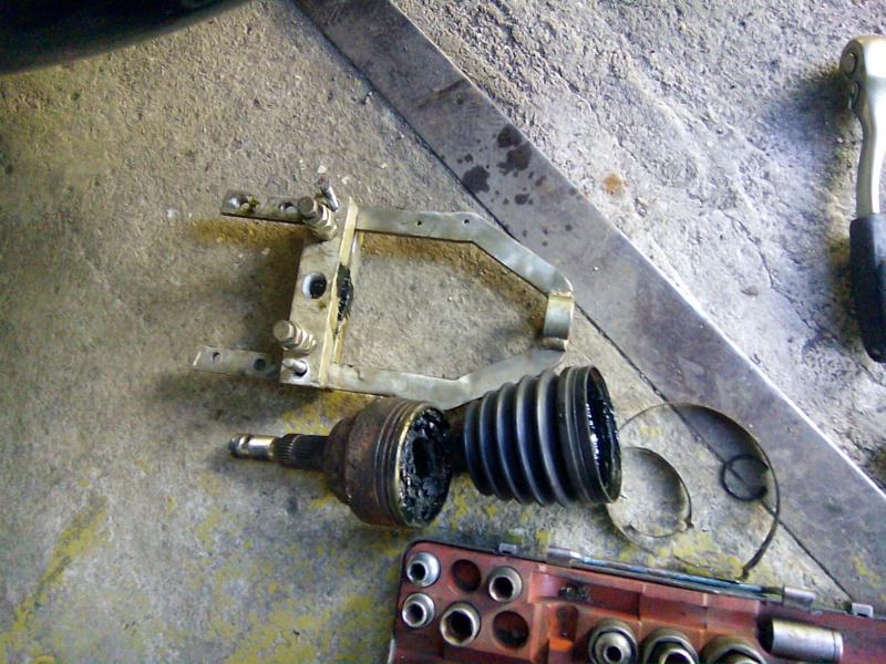 poté vemem homokloub a pokud zjistíme že v něm je mazivo nevalné kvality -hrudkovaté a poloztvrdlé tak homokloub důkladně vymejeme a natlačíme nové mazivo