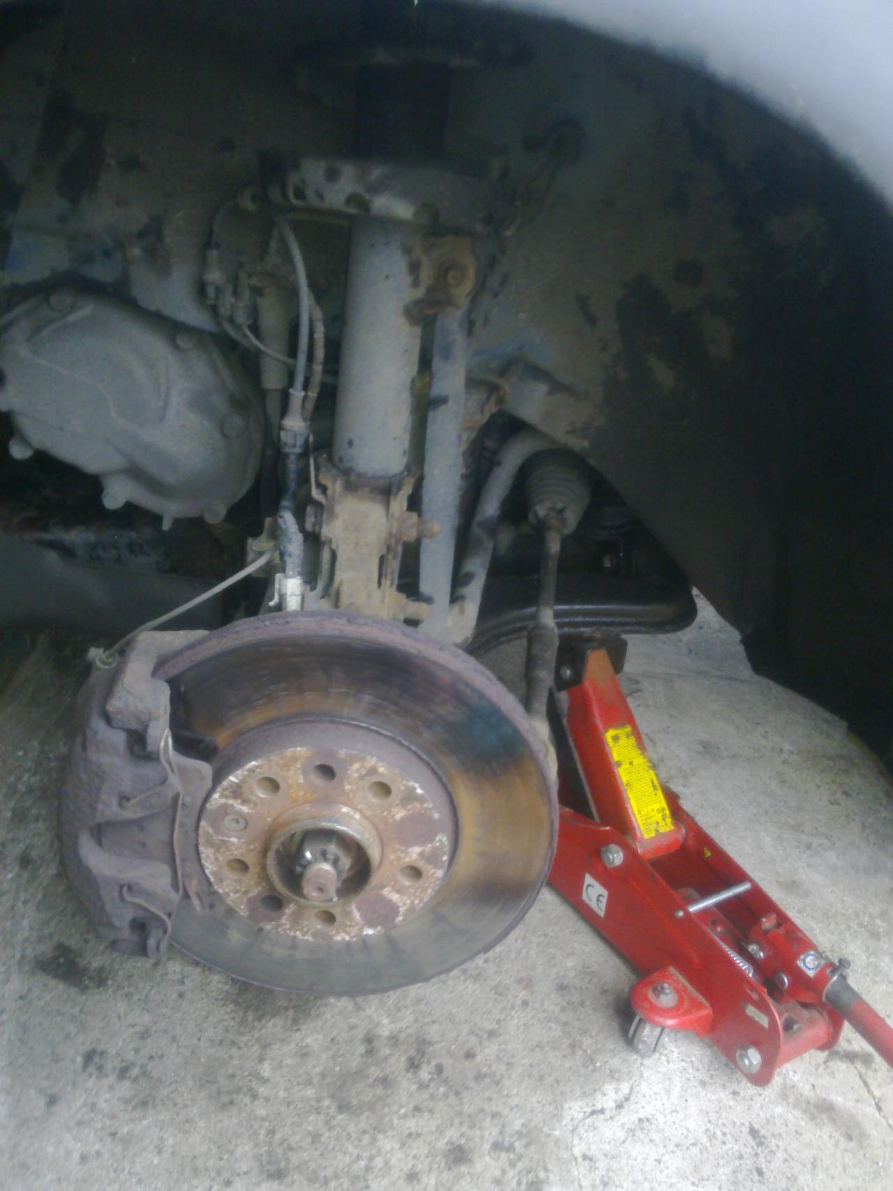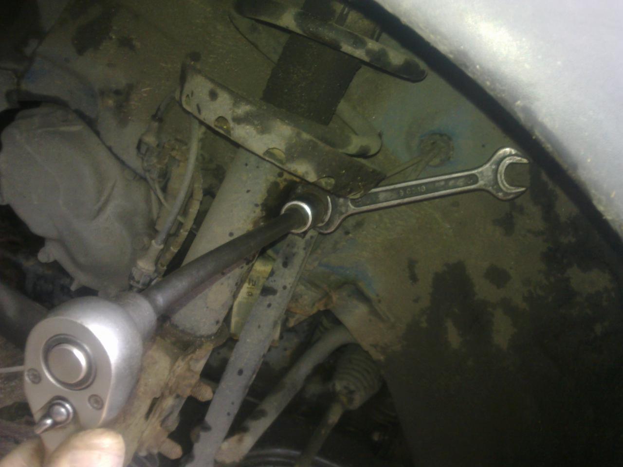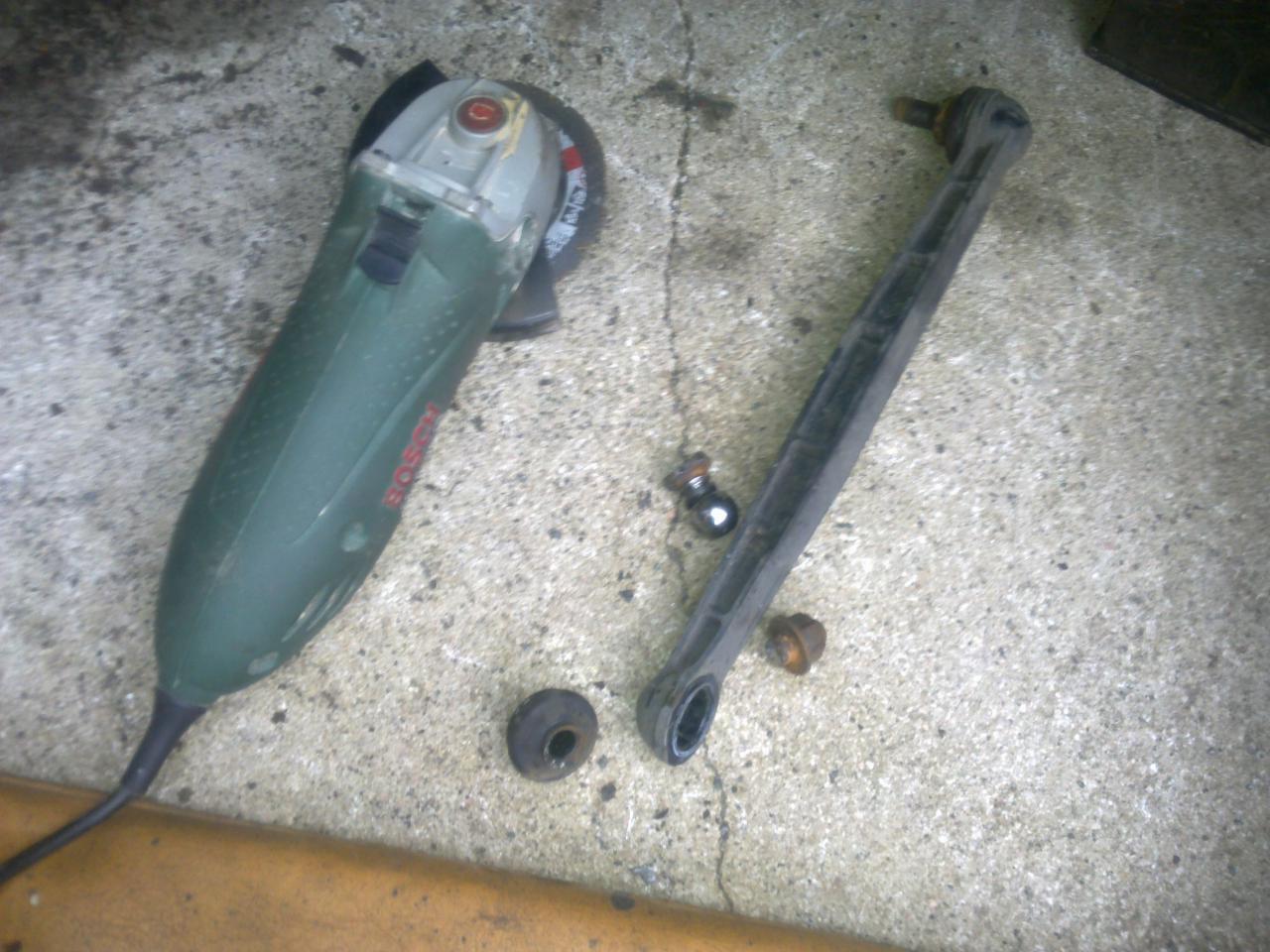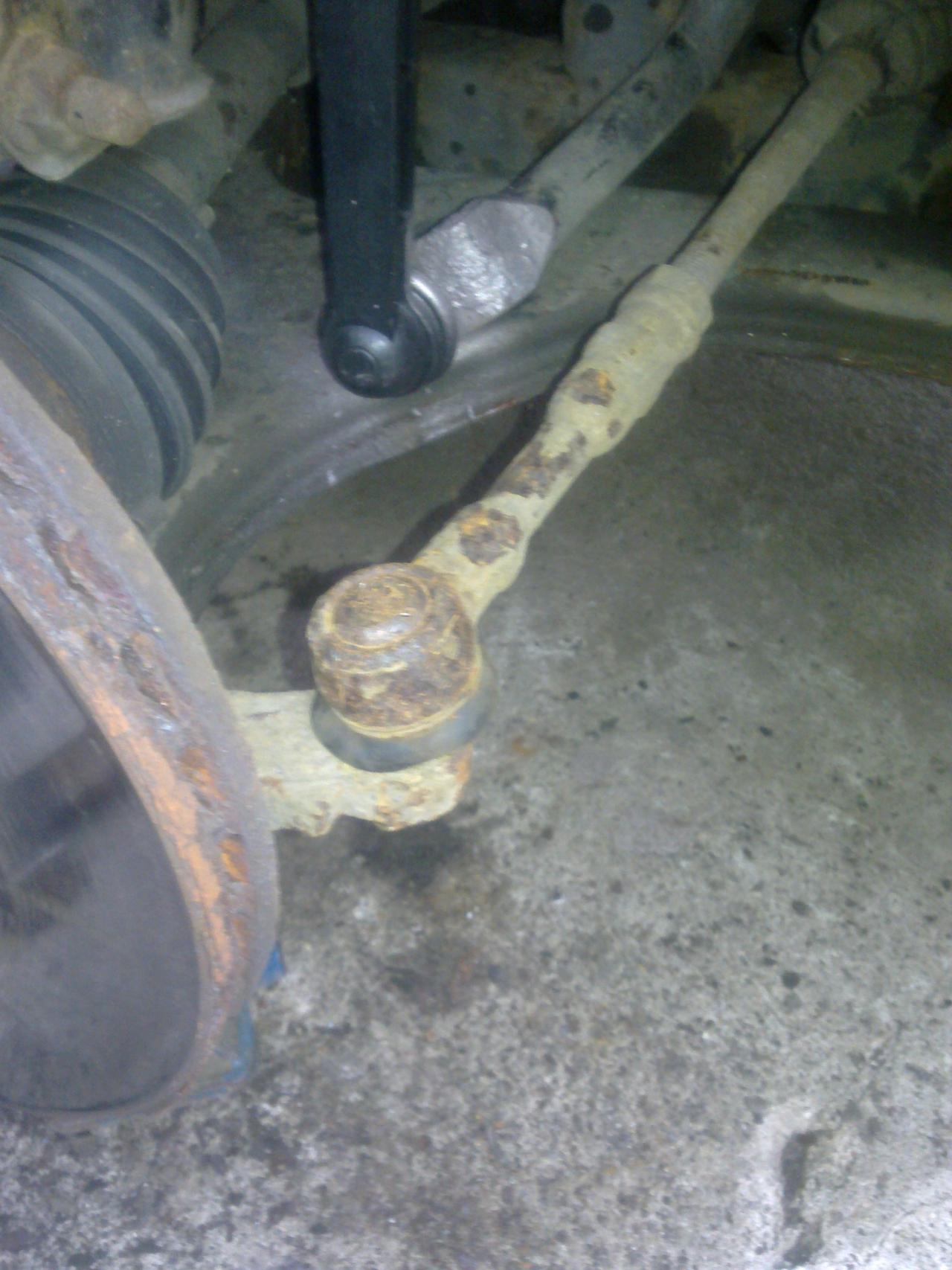 po té se pokusíme tyčku povolit -pokud to de máme vyhráno,pokud ne musíme použít rozbrušovací brusku-při použití brusky si pro lepší přístup sundáme tyčku řízení