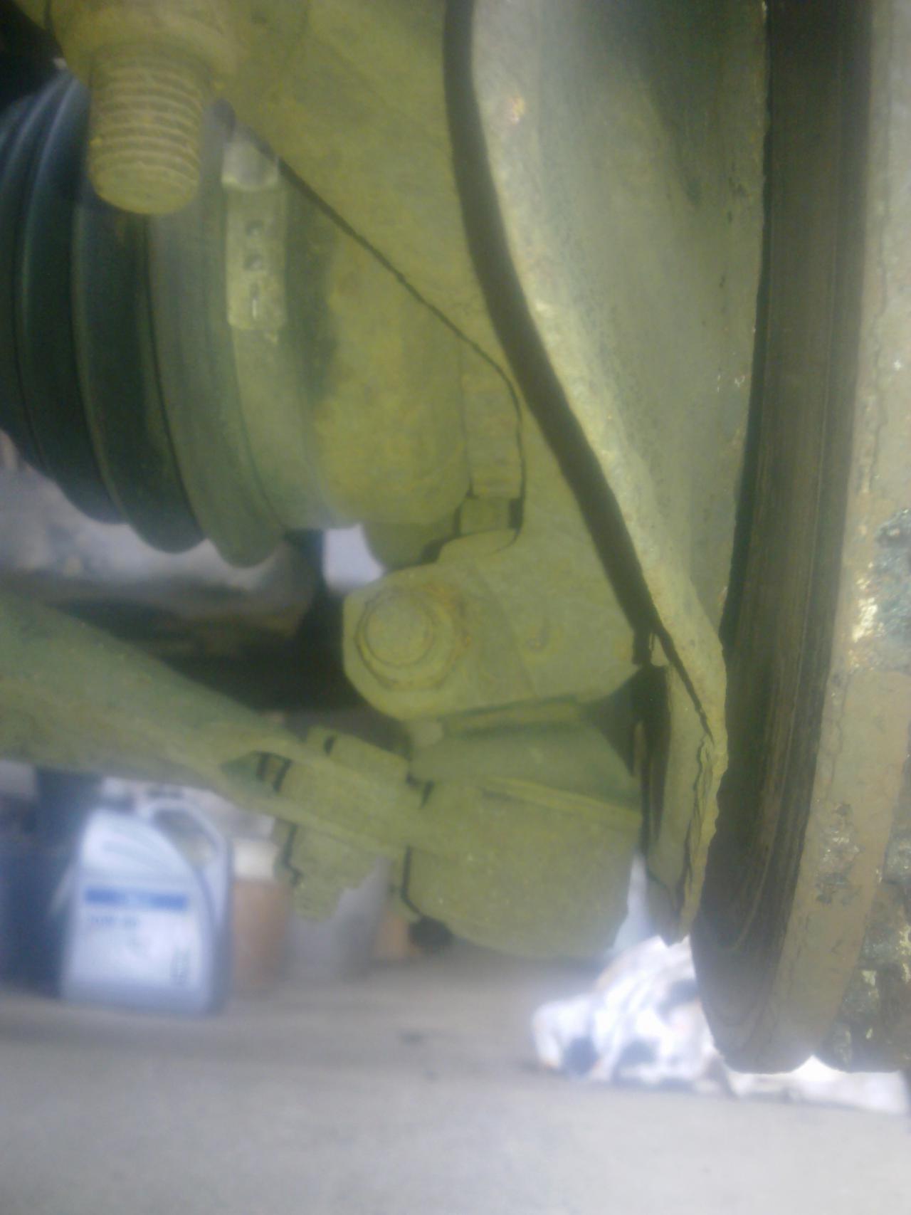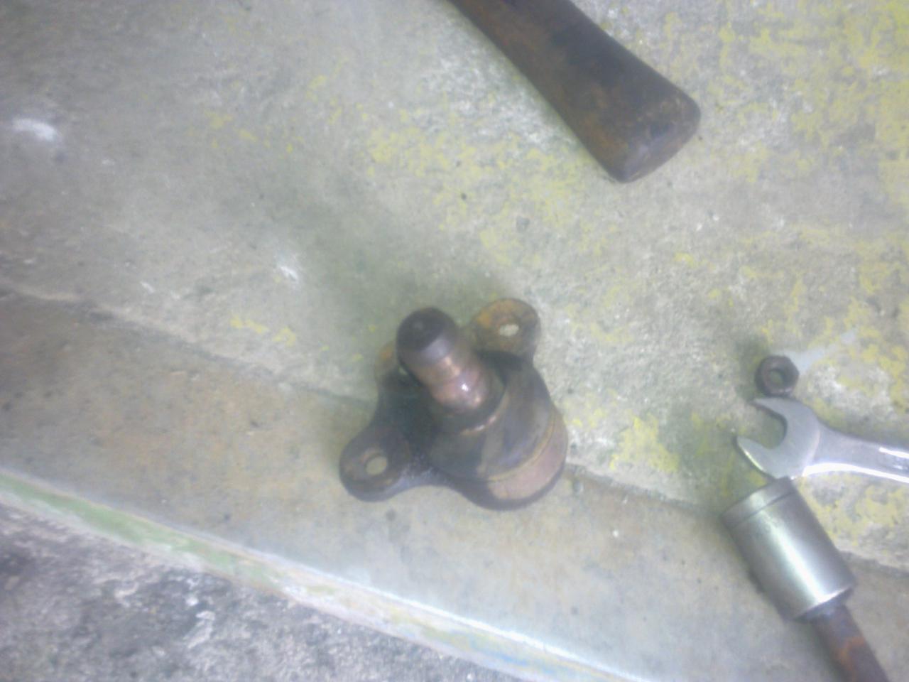 povolit a vyklepnout v těhlici šroub jen drží svislý čep-já to měl na 18ku klíč a vysunout čep s těhlice bud stahovákem nebo za pomoci pajcru