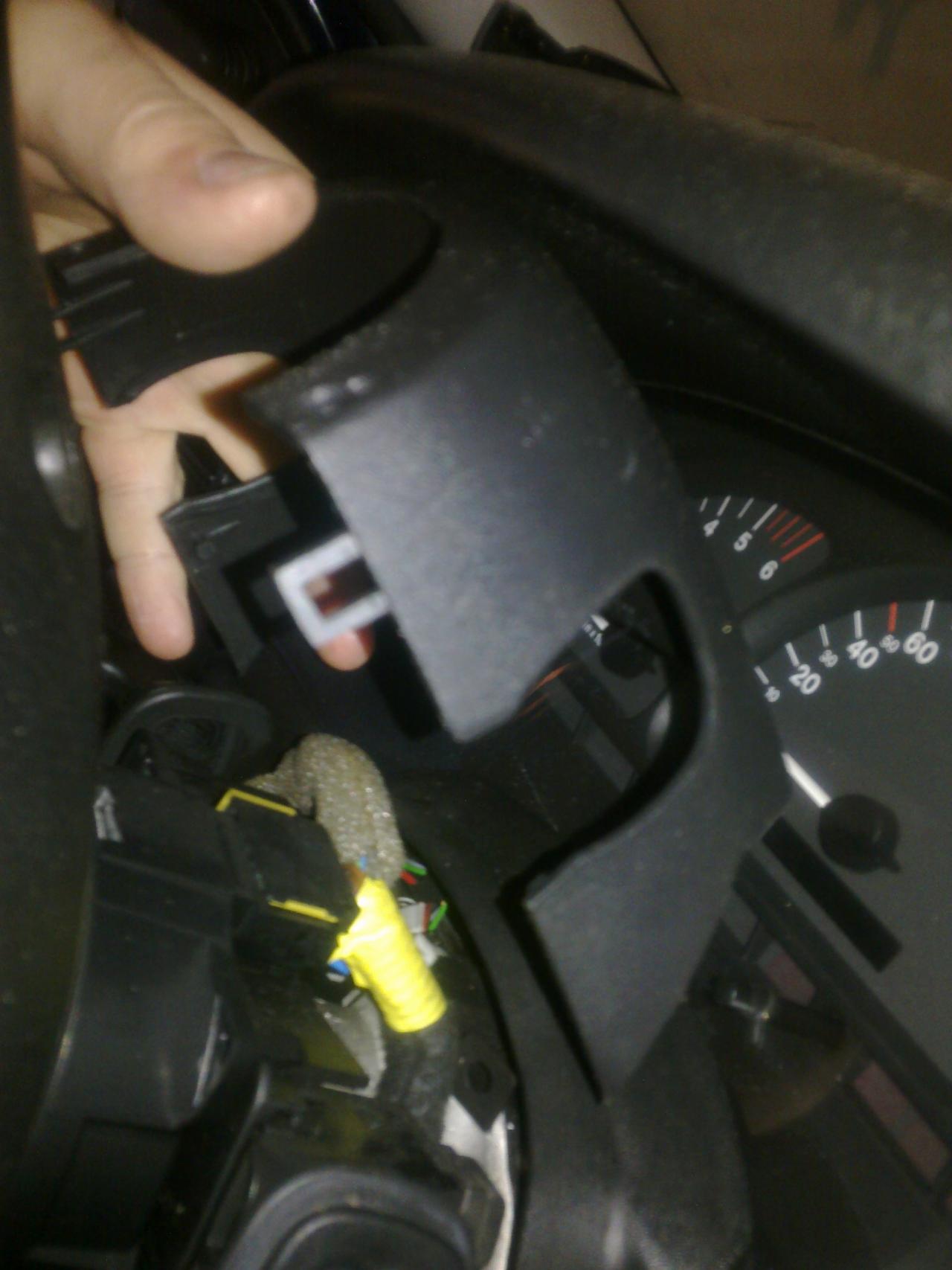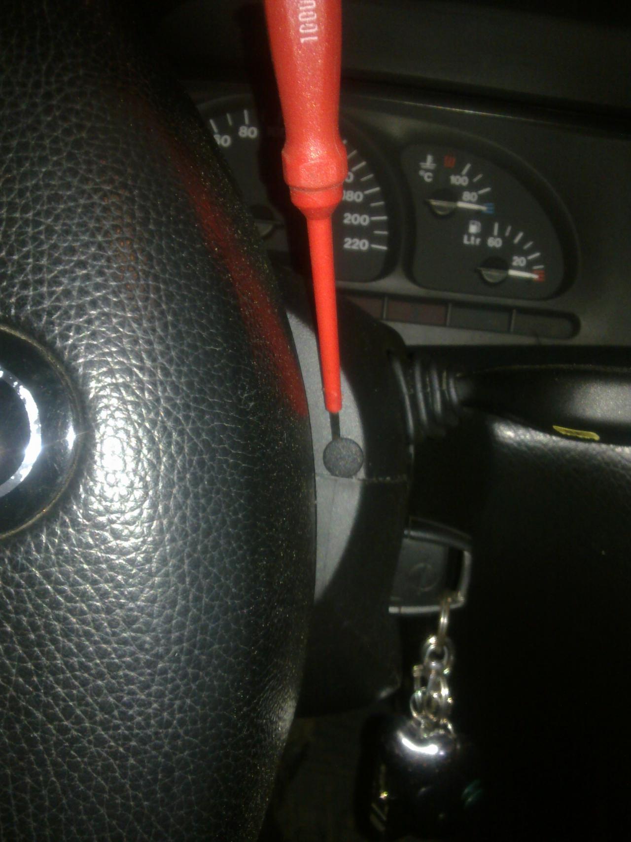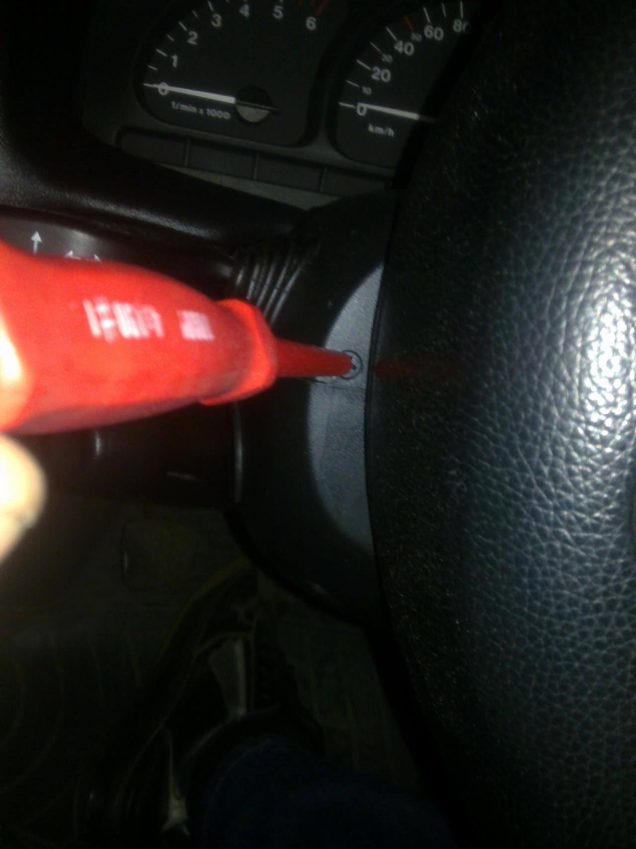 pokud máme vytočíme páku nastavení volantu a sundáme spodní a vrchní kryt volantu -spodní 3 šrouby křížový šroubovák,vrchní vytočit volant viz foto vycvaknout záslepky a povolit 2 křížové šroubky