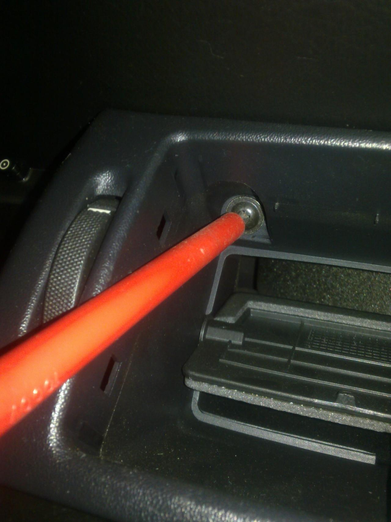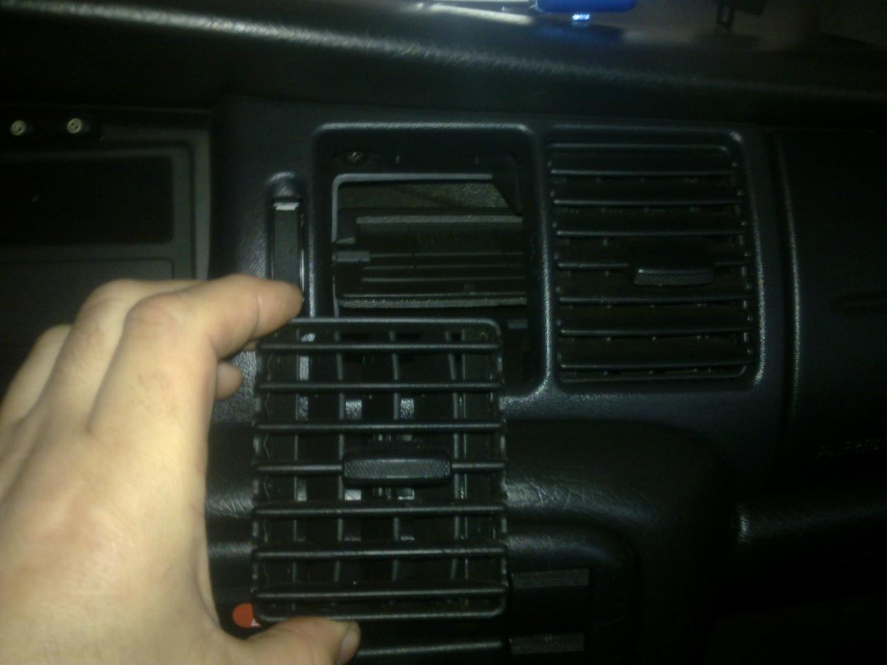 ted vycvaknem spínač světel a postupně vycvakáme mřížky výdechů jedna na straně řidiče,dvě na středu viz.foto,postupujem opatrně neb se to dá rychle ulomit já používám dva tenčí ploché šroubováky